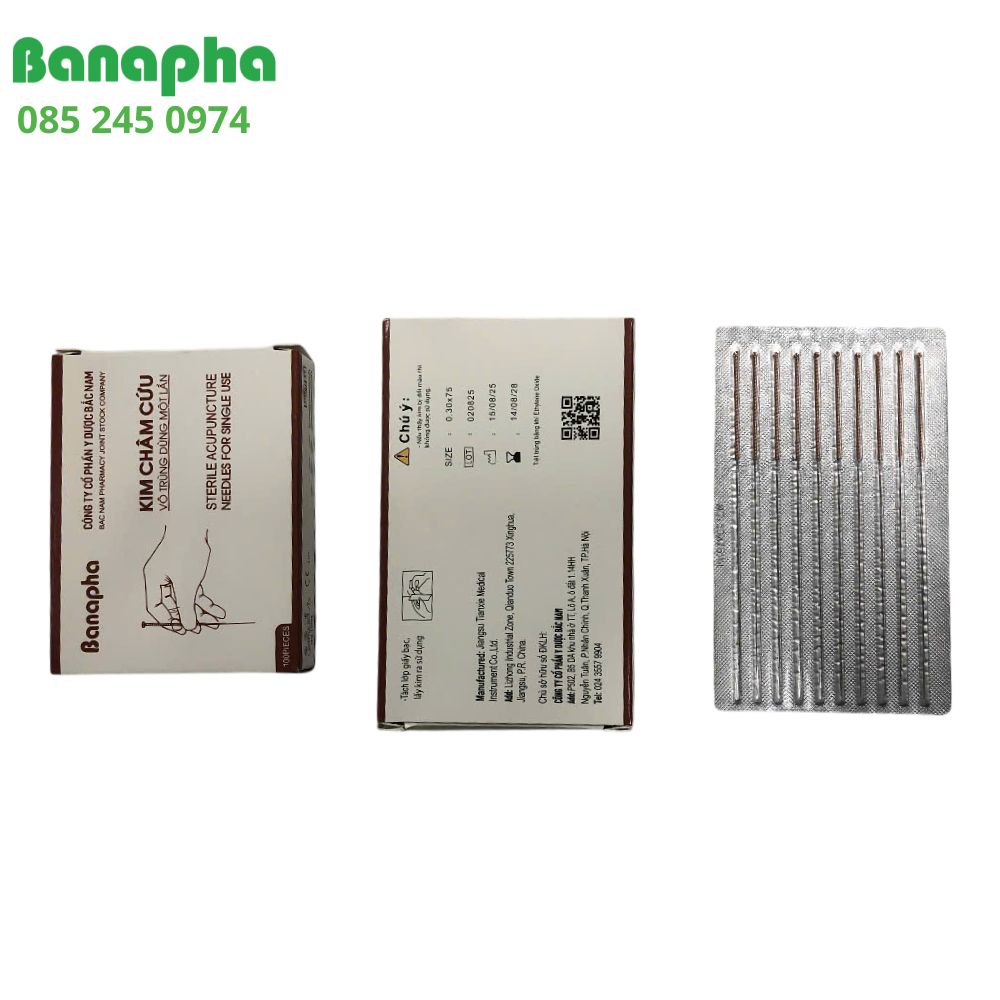 Kim châm cứu Banapha vô trùng dùng 1 lần túi 10 cán thép